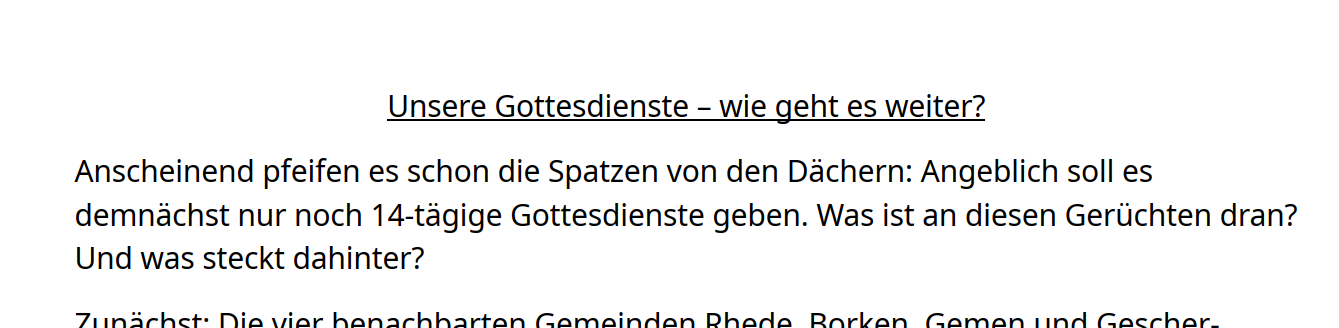 Gemeindeversammlung einladen. Das Thema lautet: Häufigkeit der Gottesdienste.